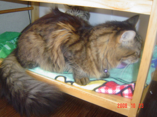 短毛ならマダシモ。。。メインクーンの体のデカサさ上に超ヒツコイ長毛と来てるもんだから。