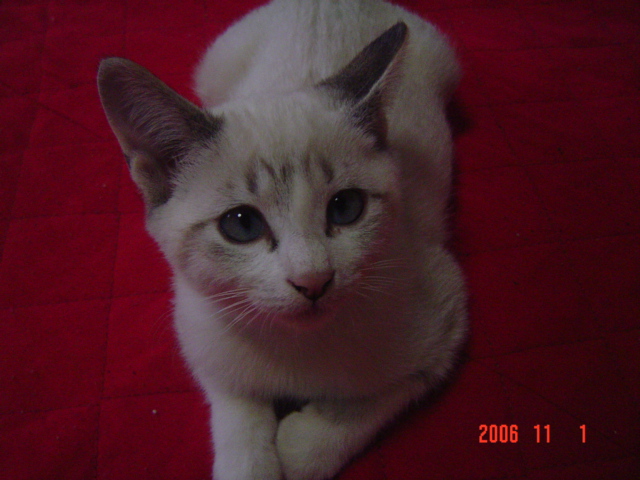 保護当初、招き猫姿で